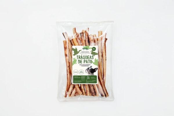 Las Tráqueas de Pato 100 g son un snack natural y saludable, especialmente indicado para perros de tamaño mini. Al estar cuidadosamente deshidratadas, mantienen todo su sabor natural y ofrecen una textura crujiente que no solo encanta a los peludos, sino que además ayuda a cuidar su salud dental.