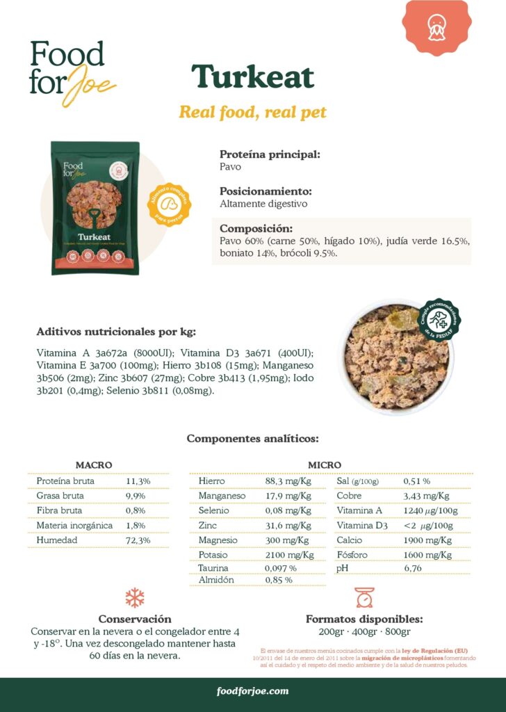 ¡ALIMENTO CONGELADO! Menú de Pavo ¨Turkeat¨ 800 gr Comida 100% natural cocinada al vacío a baja temperatura