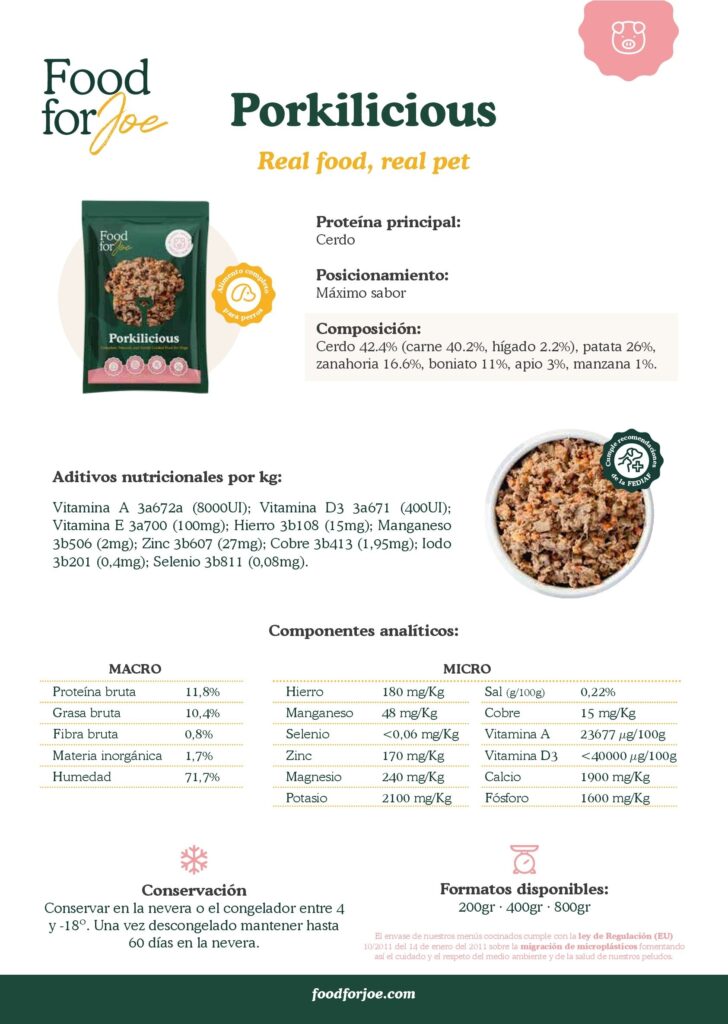¡ALIMENTO CONGELADO! Menú de Cerdo ¨Porkilicious¨ perros Comida 100% natural cocinada al vacío a baja temperatura