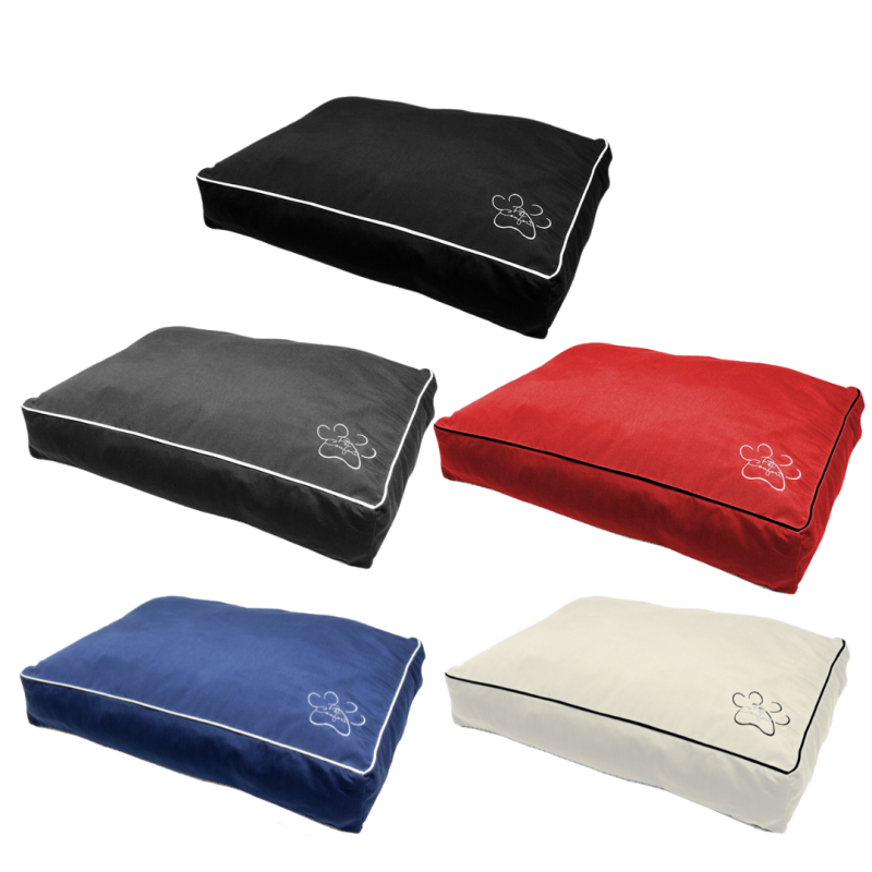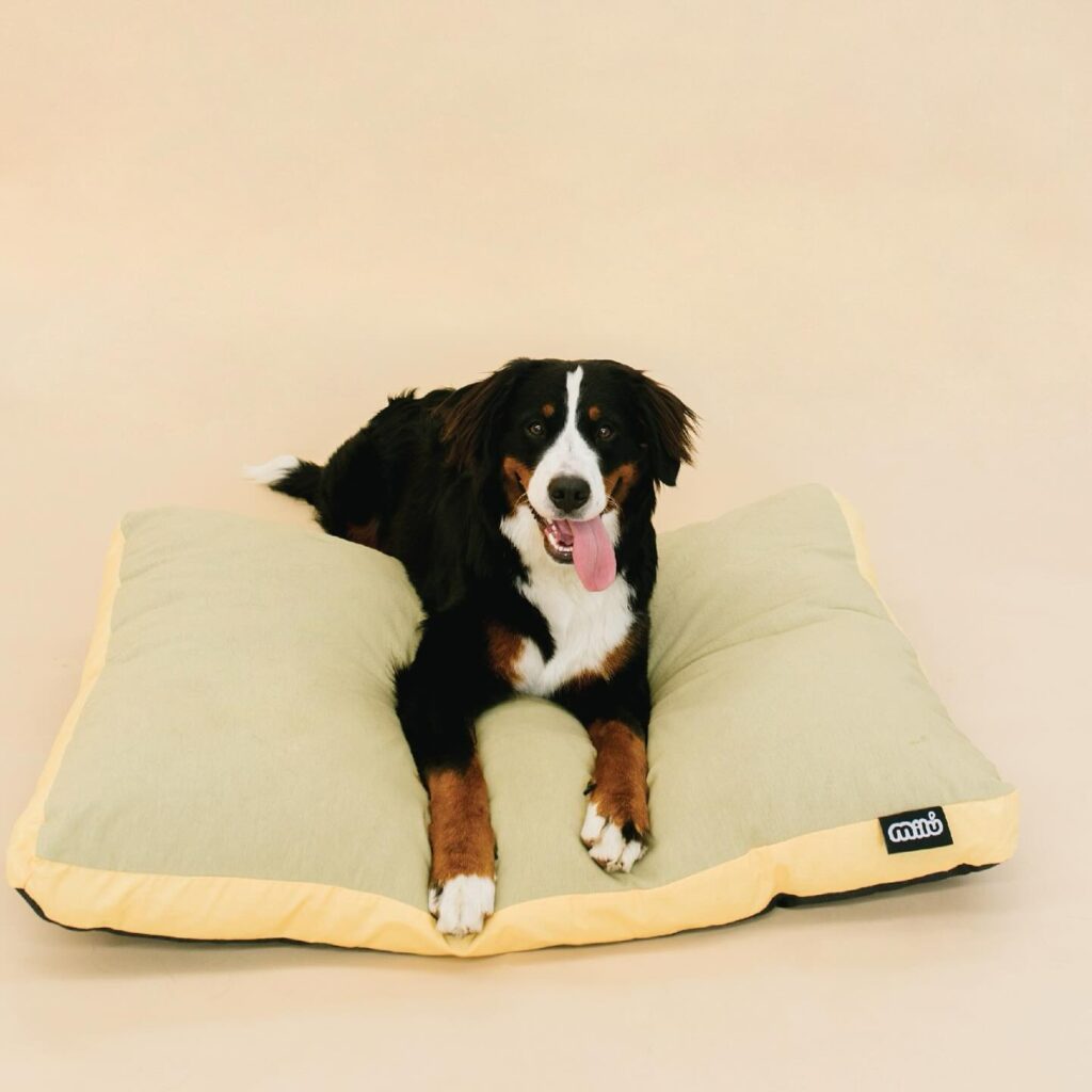 Cama Milú para perros – cómoda, fresca y desenfundable. Con relleno de fibra reciclada hipoalergénica y antiácaros. Medida 104×68×8 cm. Varios colores disponibles.